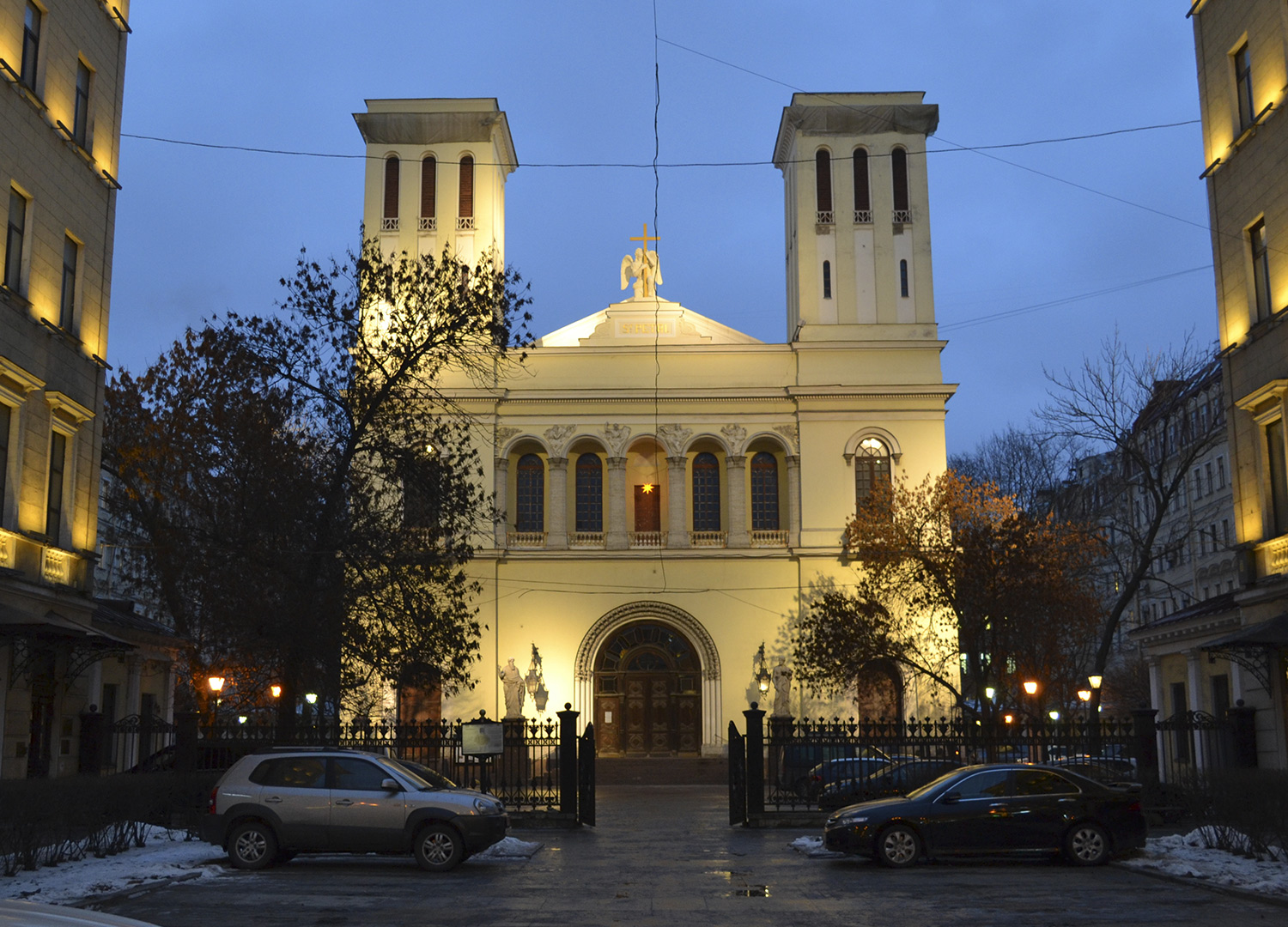 Пройдемся по Невскому до Петрикирхе – под этим названием церковь наиболее известна. За столетие до ее строительства на этом месте располагалась двухэтажная базилика с башней. Но годы взяли своё, и в 1833 году здание снесли. За 5 лет возвели новое по проекту Александра Брюллова, выигравшего конкурс. Здесь в полной мере проявился его талант и внимание к деталям. На фасаде виднелись горельефы с изображением евангелистов, вверх устремлялись две симметричные башни, между ними разместилась скульптура ангела с крестом в руках. На башнях установлены два циферблата. Посмотрим, как церковь выглядит сейчас и узнаем больше о ее роли в жизни верующих.