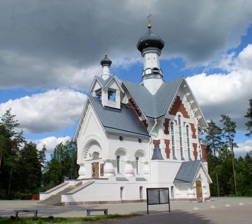 • Усадьба Санкт-Петербургского подворья Оптиной Пустыни расположена в живописном уголке посёлка Сосновый Бор Выборгского района, и окружена с одной стороны многовековым сосновым бором, с другой — озером.