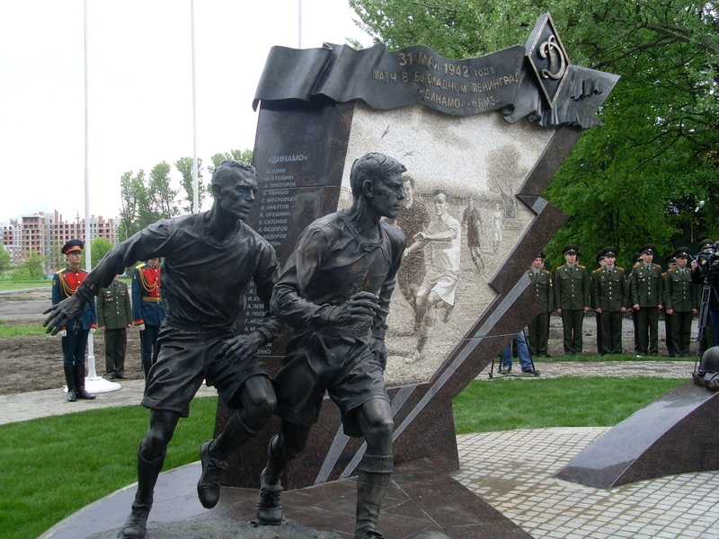 Пусть гитлеровцы знают, как «мертвые играют в футбол»! 31 мая 1942 года на стадионе «Динамо» состоялся футбольный матч. Два 30-минутных тайма были проведены без перерыва. Как смогли истощенные и измотанные игроки провести на изуродованном поле столько времени – неизвестно, но это был подвиг. На следующий день у самой линии фронта в течение 90 минут под грохот снарядов передавался репортаж о футбольном матче со стадиона «Динамо»...