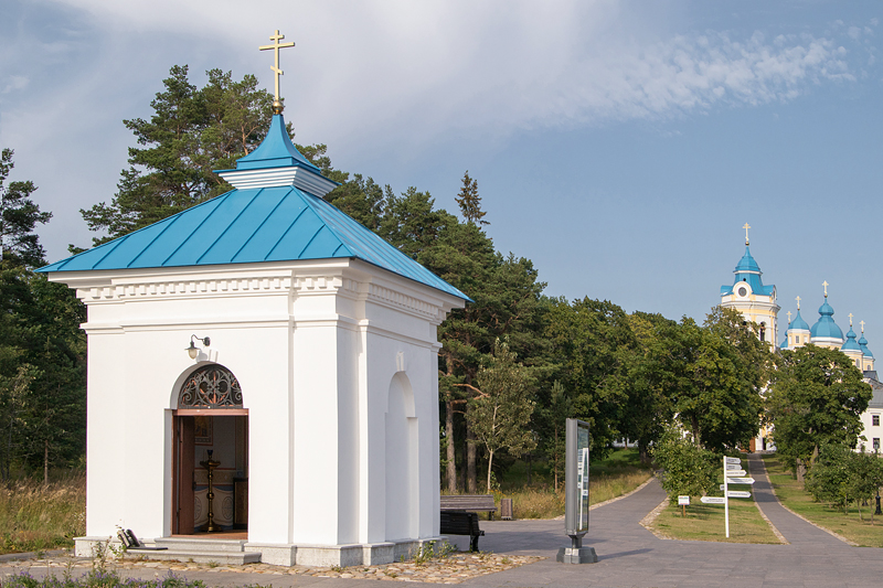 На самом берегу монастырской пристани, куда мы с вами причаливаем, расположилась белоснежная часовня Николая Чудотворца с голубой кровлей, увенчанной крестом. По традиции прибывавшие паломники совершали здесь молебен о благополучном прибытии на остров, ведь Святитель Николай покровительствует всем плавающим и путешествующим. Часовня составляет единый с Монастырской усадьбой, или как её ещё называют каре, ансамбль. Мы узнаем, что представляла из себя часовня во времена военно-морской части, прогуляемся по ведущей от неё кленовой аллее XIX века и полюбуемся окружающими видами.