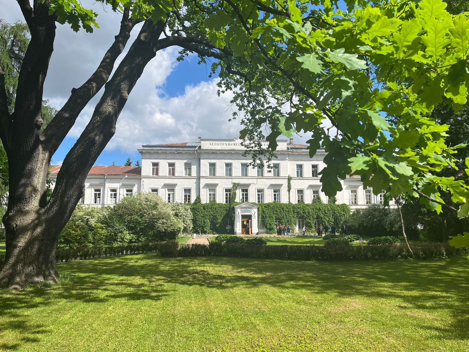 Увлекательную историю услышим возле учреждения, раньше называвшегося Лесным институтом. Сюда его перевели из Царского Села. Поначалу территория была заболоченной. Постепенно распланировали места для корпусов и жилых построек, а также ландшафтного парка в английском стиле. Прокладывали улицы, но когда средства закончились, Институт стал продавать участки дачникам. О том, кто здесь гостил и отдыхал, поговорим на экскурсии.