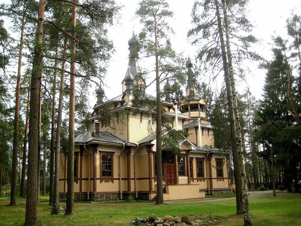 Напоследок заедем в Песочное, где был построен первый в России Храм в честь святого Серафима Саровского. Работы завершили в 1904 году. Средства собрали жители посёлка по инициативе «Общества распространения религиозно-нравственного просвещения в духе Православной Церкви». Графиня Левашова выделила участок земли из имения Осиновая Роща для храма и летней колонии для беднейших детей. В 37 году церковь закрыли, а настоятеля расстреляли. После помещения заняли клуб и пункт проката. Купола и колокольню снесли, поэтому к 90-м годам здание уже находилось в плачевном состоянии. Оно могло разрушиться, требовался капитальный ремонт. В результате храм восстановили по историческому проекту, и во время путешествия гид расскажет, какое событие поспособствовало этому. А мы заглянем внутрь, чтобы проникнуться особой атмосферой церкви и полюбоваться большим пятиярусным иконостасом.