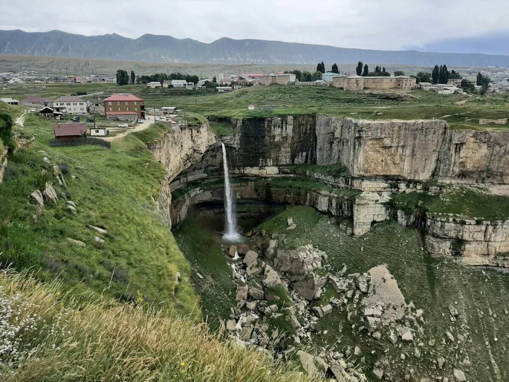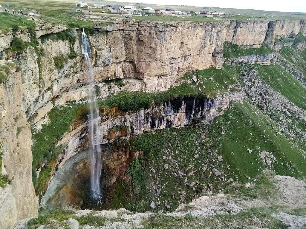 Позавтракаем и отправимся на встречу с красотами природы. Перед нами предстанет самое обширное высокогорное плато Дагестана – Хунзахское, площадь которого достигает 250 квадратных метров. Края скал обрывистые, а местами и отвесные, поэтому головокружительные виды обеспечены! Именно здесь находится один из высочайших водопадов Северного Кавказа. Тобот с небывалой силой срывается на дно ущелья, образуя пороги и радужные брызги. По крутому серпантину проследуем к водопаду мимо альпийских лугов и пастбищ. Высота Тобота точно неизвестна. Из-за разницы в методиках ученые называют цифры от 50 до 100 метров. Но даже без точных подсчетов водопад производит неизгладимое впечатление.