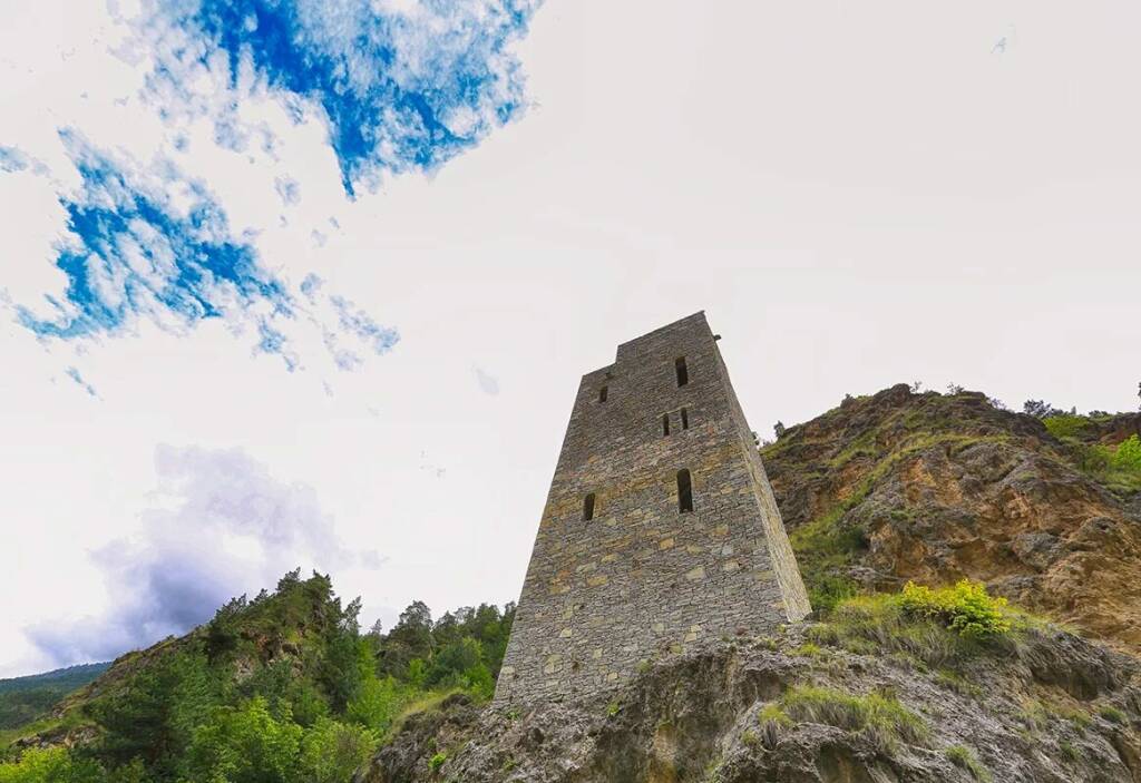 Увидим знаменитую Гимринскую башню – старинное оборонительное сооружение XIX века, напоминающее о стойкой обороне горцев. Отсюда хорошо просматриваются дорога и ущелье, этим объясняется важность объекта во время Кавказской войны. Горцы возвели башню для отражения атак и защиты от врагов. Время и боевые действия не пощадили конструкцию – постепенно от нее остался только фундамент. Разрушенное здание восстановили из небытия в 1997 году, и внешне оно действительно напоминает оригинал. Внутри башня пустая, деревянная лестница ведет наверх к смотровой площадке. Об истории разрушения и реконструкции расскажет гид.