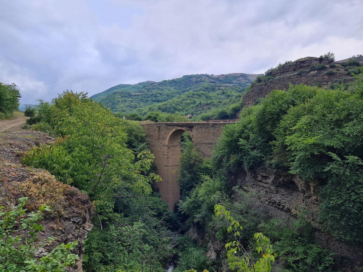 Побываем неподалеку от древнего села Ругуж, первые упоминания о котором относятся к IX веку. Здесь построены два параллельных моста, соединяющих части населенного пункта. Старая переправа – деревянная, более «молодая» – кирпичная, возведенная местными мастерами из речного камня. Одноарочный мост необычайно высоко возвышается над рекой. Строительство велось столетие назад. Сначала конструкция имела деревянный настил, а в 60-е годы каменщики возвели арку. Бывалые путешественники говорят, что лучшее всего любоваться сооружением снизу.
