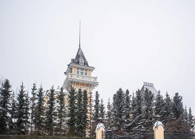 К числу самых романтических зданий на Каменном острове относят и особняк, возведенный по заказу швейцарского портного, поставщика Императорского двора Эдуарда Фолленвейдера. Шедевр северного модерна отдаленно напоминает средневековый замок. В народе он получил прозвания «Теремок» и «Сахарная голова» – второй псевдоним связан со своеобразным очертанием крыши, так как башенка напоминала форму упаковки сахара того времени. Красная черепичная крыша, причудливые формы здания, разнообразные по очертаниям окна – хоть в кино показывай! Конечно, этим воспользовались режиссеры. В приключениях Шерлока и Ватсона особняк получил эпизодические роли. В серии «Сокровища Агры» детективы направляются к майору Шолто, и по пути из окна экипажа видно это здание. Также оно появляется в сцене погони. Киноманам «Теремок» также запомнился по картинам «Господин оформитель» и «Приключения принца Флоризеля».