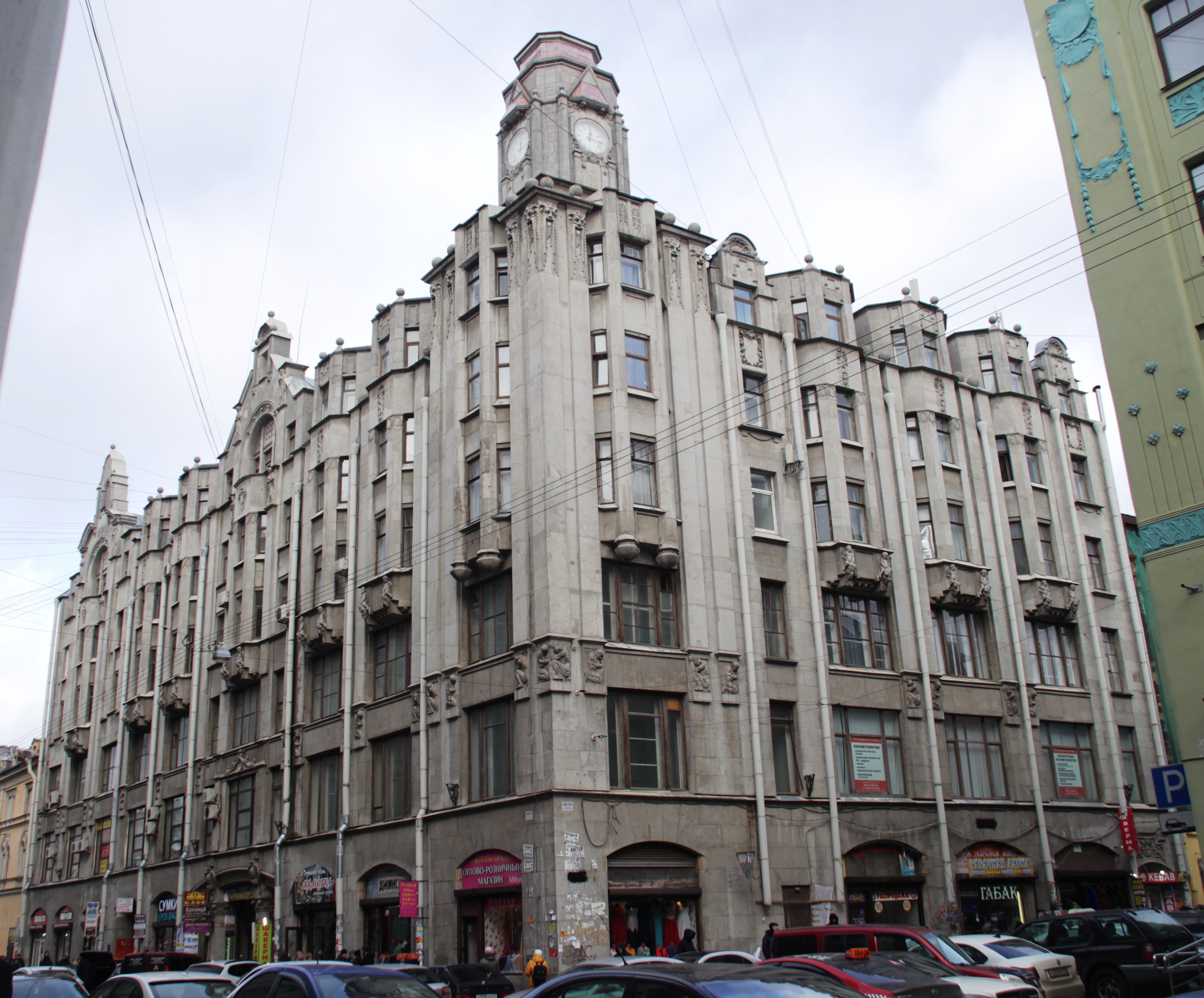 На улице Садовой мы познакомимся с Домом городских учреждений. Знаменитое здание на углу Садовой улицы и Вознесенского проспекта было построено по проекту того же А. Л. Лишневского. Дом выполнен в стиле модерн с эффектными готическими порталами. За эту работу архитектору в 1907 году даже присудили премию на городском конкурсе фасадов. На крыше грозно восседают остроухие совы, как будто следящие за оживлённым городским движением. Угловую башню когда-то венчали скульптуры «Свобода» и «Труд», но к моменту последней реставрации изваяния исчезли. Во внутреннем дворе можно увидеть несколько бонусов: летучих мышей, демонов, химер и других мифических персонажей.