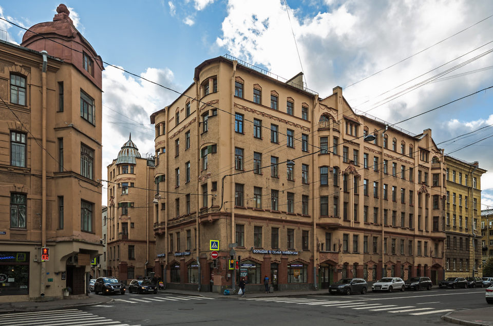 Знакомство с фантастическими сущностями, которые прячутся на улицах нашего города, начнется с Загородного проспекта. Там находится вычурный, но неизменно привлекающий внимание Доходный дом Корфа. Этот дом находится на примечательном месте, который называют «пять углов», т.к. это место, где лучами расходятся пять улиц. Дом с башней и другими украшениями фасада в стиле неоклассицизма был построен в начале XX века, его история связана с разными известными персонами. Мы детально рассмотрим этот дом, а гид расскажет подробности об интересных существах, которые «обитают» на его фасаде.