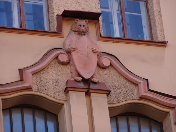 Следующее загадочное здание в стиле модерн, которое мы внимательно рассмотрим – Доходный дом Алюшинского. Необычен лепной декор фасада дома: со стороны Малого пр. в колючих листьях чертополоха запутались и ощерились дикие коты, портал со стороны ул. Ленина также охраняют кошки, стоящие на вытянутых лапах, с поднятыми хвостами. Центральную часть фасада украшают рельефные изображения медведей со щитами в передних лапах. Исчерпывающую историю этого дома расскажет наш экскурсовод.