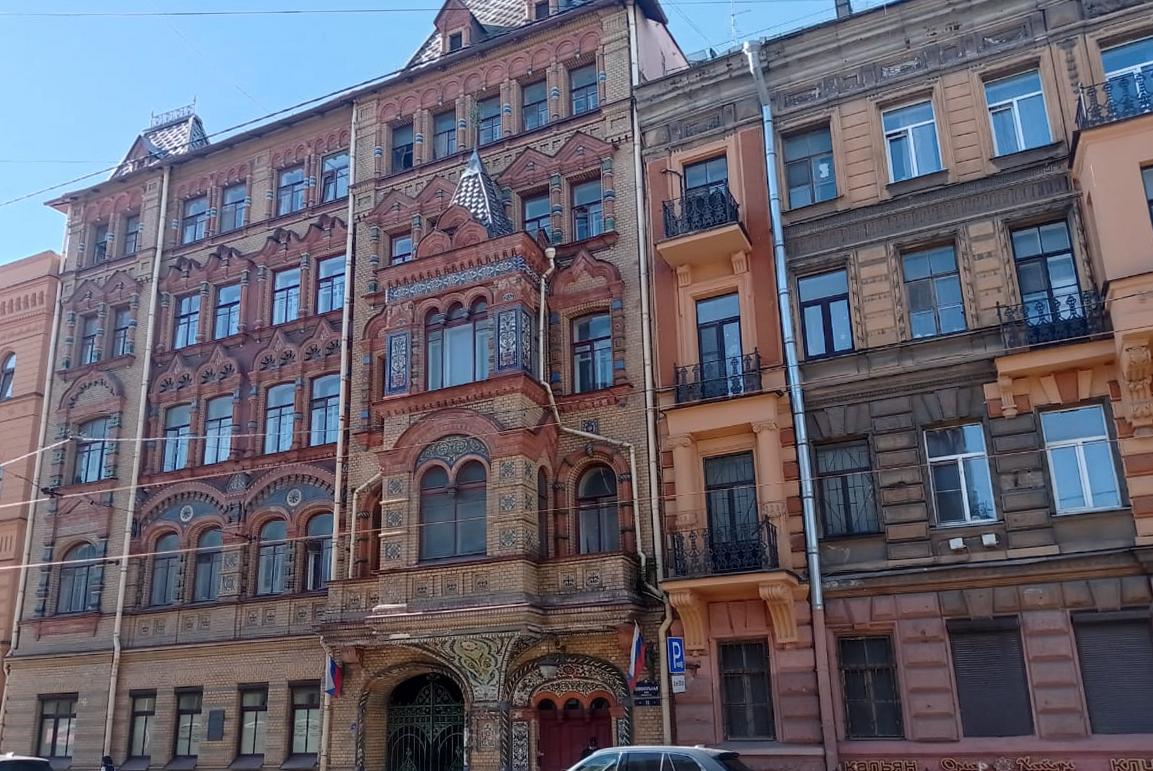 На площади Островского поговорим о начале карьеры зодчего. Он был выходцем из крестьянской семьи, родом из Ярославской губернии. В 1872 году поступил вольнослушателем в Петербургскую академию художеств. Одна из первых работ мастера – место, где жила творческая интеллигенция: актеры и режиссеры. Пятиэтажное здание напоминает русский деревянный терем. Эркеры, пилястры, лепные кружевные узоры, наличники, кокошники – всё это услаждает взгляд ценителей архитектуры. Дом отличают живописный декор фасада и сложная форма стен. Это творение стало частью ансамбля площади, сформированного Росси, но выделяется на фоне классических строений. Архитектор Басин не побоялся стилевого несоответствия и привлек к сотрудничеству Никонова. Когда на площади Островского появился дом, напоминающий работы древнерусских мастеров, возникла легенда. Согласно ей, императора Александра III впечатлила архитектура здания, поэтому он захотел возродить русские национальные традиции. Как воплощалась эта идея в жизнь, узнаем от гида.