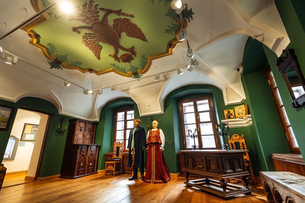 Как жили тверичи в давние времена? Ответ на этот вопрос нам подарит интересная и познавательная экскурсия в Дом купцов Арефьевых. Здание, где разместилась часть коллекций Музея быта, было построено во второй половине XVIII века. По легенде, представители знаменитого рода принимали у себя даже Петра I. Встречу с государем музейщики визуализировали в самом большом зале. В помещении, украшенном барельефом двуглавого орла, воспроизведен интерьер парадного зала купеческого дома. Это часть самой современной в городе экспозиции: «Красота и польза. Декоративно-прикладное искусство Тверской земли», открытой менее 2 лет назад.
