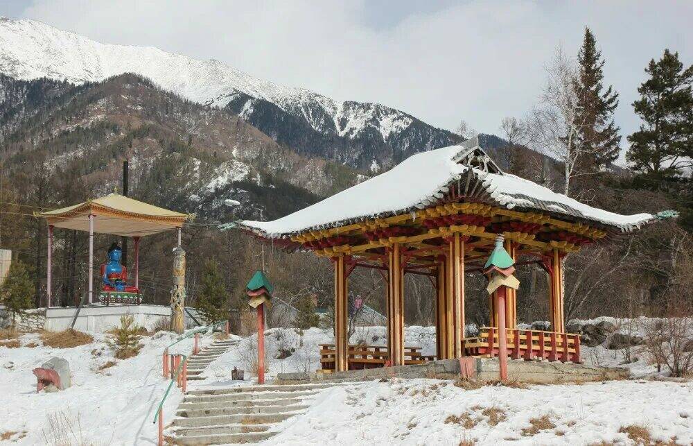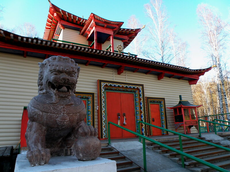 Жизнь в Бурятии неразрывно связана с духовным обогащением. Даже в маленьком Аршане есть два действующих храма и один заброшенный. Мы посетим дацан «Дэчен Равжалин», расположенный в центре поселка. Буддистский храм возвели в конце 90-х в стиле восточной пагоды. Даже вокруг него будет интересно прогуляться – повсюду видны диковинные скульптуры. Фигуры высечены из гранита или созданы из дерева. Встречаются львы, драконы и мистические существа, характерные для восточных верований. На фасадах сделаны декоративные вставки с барельефами животных, людей и будды. Кроме самого храма и его застывших хранителей, встретим малые архитектурные формы в березовой роще – беседки, ротонды и алтари.