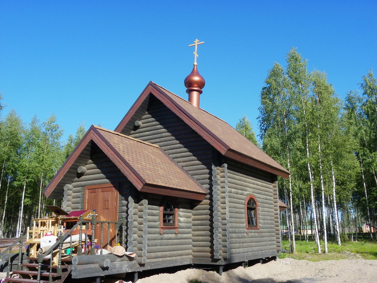 Продолжим экскурсию в деревне Тукса, где увидим Храм Вознесения Христова. Работы по его строительству завершились около 15 лет назад. При возведении использовался тот же проект, что и для Вознесенской церкви в Питкяранте. «Младшая сестра» имеет более скромные размеры – на большее селянам собрать не удалось. Но прекрасный в своей простоте деревянный храм, безусловно, заслуживает внимания. Изящные купола здания с высокого холма видны издалека. Убедимся, что храм прекрасен и внутри, и увидим иконы, которые преподнес в дар настоятель Александро-Свирского монастыря.