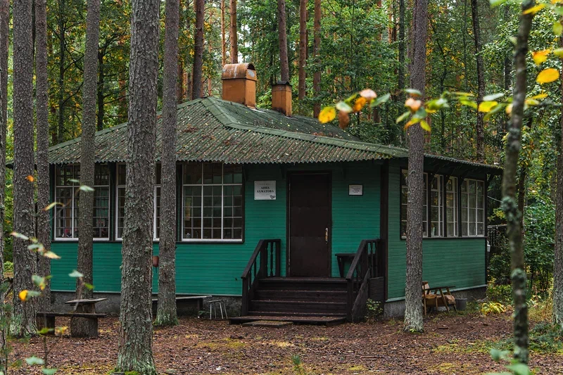 Заглянем в место, где поэт провела последние 10 лет жизни. Из-за скромных размеров здание называли «Будкой». Пристанище Анне Андреевне временно предоставил Литфонд. Опала литератора в начале 60-х уже закончилась, ее постепенно стали снова печатать. И в Комарово началось паломничество молодых поэтов. Хотя удостоиться приема в «Будке» удавалось не всем. В почтенном возрасте Ахматова была очень избирательна в общении, предпочитая близких по духу людей. Вечерами на веранде собиралась теплая компания. В нее нередко входили Иосиф Бродский, Белла Ахмадулина, Ольга Бргольц, Евгений Рейн, Анатолий Найман и другие деятели искусства. Дача в Комарово до сих пор принадлежит Союзу Писателей, а ее фасад украшает памятная табличка, посвященная Анне Андреевне.