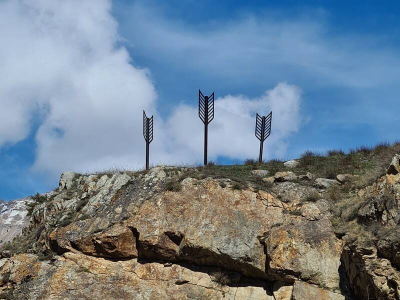 Остановимся в селе Мацута, где находятся склеп нарта Батраза и арт-объект «Стрелы Батраза». Это еще один почитаемый персонаж осетинского эпоса. Грозный воин приходит на помощь по зову нартов. Рассказывается о подвиге, когда он в одиночку одолел сотню всадников. Его наделяют такими эпитетами как «стальной», «неуязвимый», хотя с его гибелью связана любопытная легенда, которую нам поведают во время прогулки.