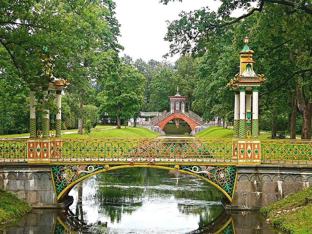 Прогулка продолжится и по Малым Китайским мостикам. Они располагаются на Крестовом канале на двух аллеях, ведущих от Александровского дворца. Азиатский колорит придают портики из парных колонн с фигурными кровлями. Мосты похожи, как братья, но есть и отличительные особенности. Какие? Это вы узнаете на экскурсии, осмотрев каждый своими глазами. А гид обязательно расскажет историю создания мостиков.