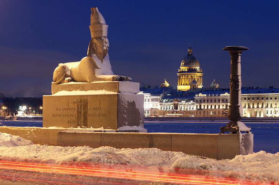 Обратимся и к древнеегипетской мифологии, побывав на Университетской набережной. Согласно верованиям, сфинксы олицетворяли силу и разум, могли защищать гробницу или храм от враждебных сил. Их изображали с головным платком немисом, священной золотой коброй и ожерельем. На Гранитной пристани Петербурга установлены подлинные древнеегипетские скульптуры XV века до нашей эры. Архитектор Тон включил в украшение набережной фигуры из плотного красного гранита, который добывался в каменоломнях на юге Египта. Скульптуры представляют собой львиные тела с головой Аменхотепа III. Чем прославился древний правитель? Что значат таинственные надписи на постаментах? Подробности услышим на экскурсии.