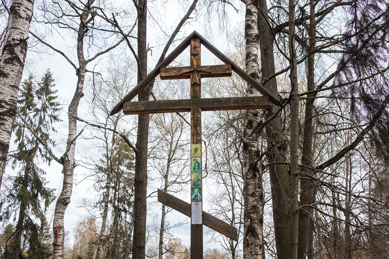 Памятный крест на месте, где император Павел хотел основать Харлампиев монастырь.