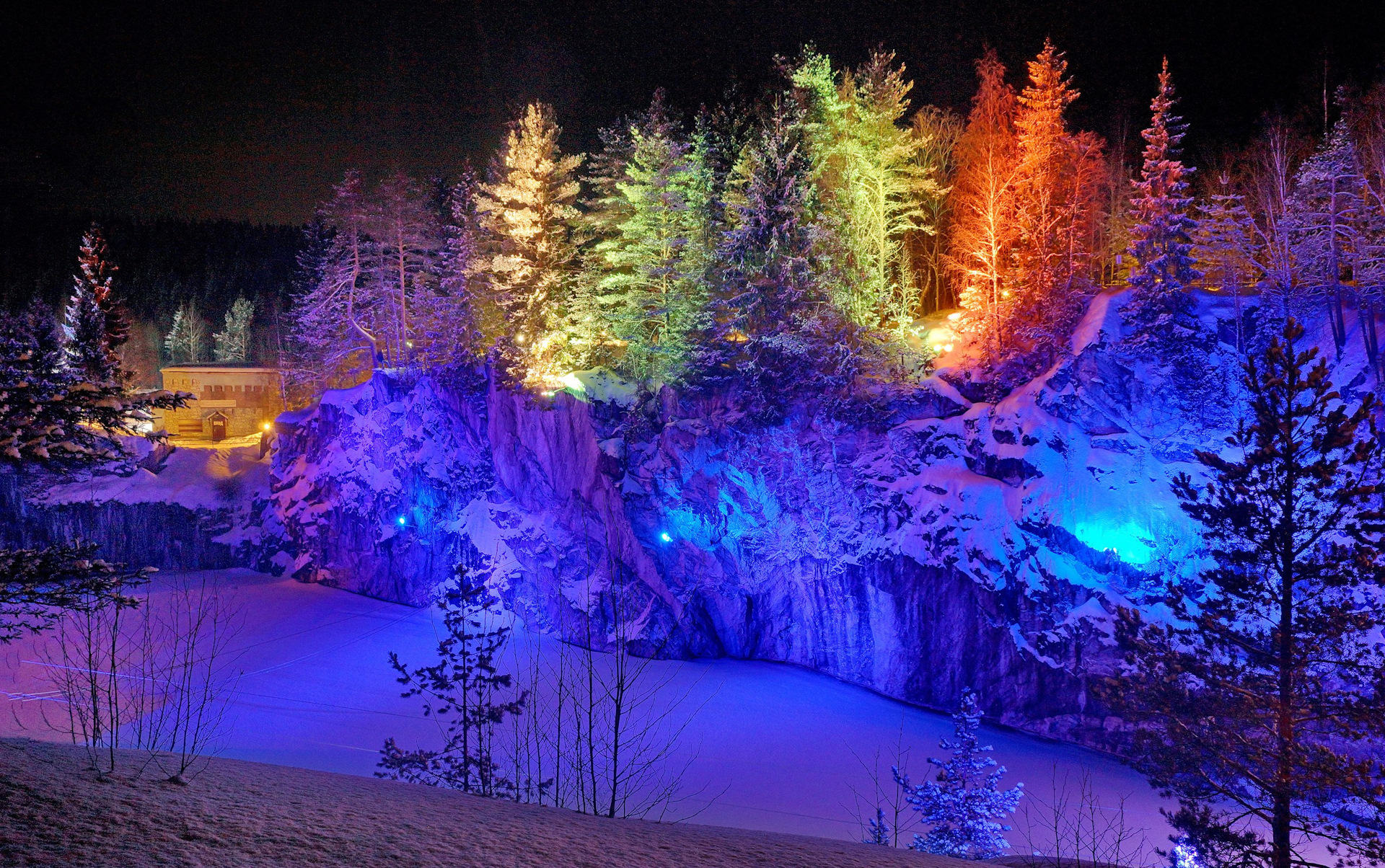 Конечно, не было бы настоящей карельской сказки без посещения горного парка Рускеала! Нас ждёт главная локация парка – мраморные склоны каньона. Мы прогуляемся по самому живописному парку Карелии, прикоснёмся к стенам и окажемся в старых штольнях. Вы увидите местные достопримечательности с лучших ракурсов, в том числе все виды мрамора, какие здесь есть. Сколько цветов и оттенков вы сможете насчитать?