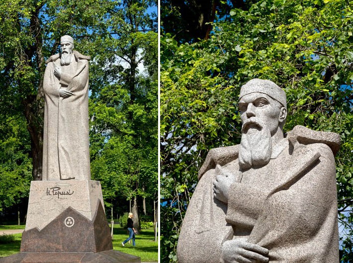 В знаменитом саду «Василеостровец» увидим памятник Рериху, выполненный из карельского гранита по эскизу петербургского скульптора Виктора Владимировича Зайко. Также на Большом проспекте увидим дом, где когда-то жил Николай Константинович.
