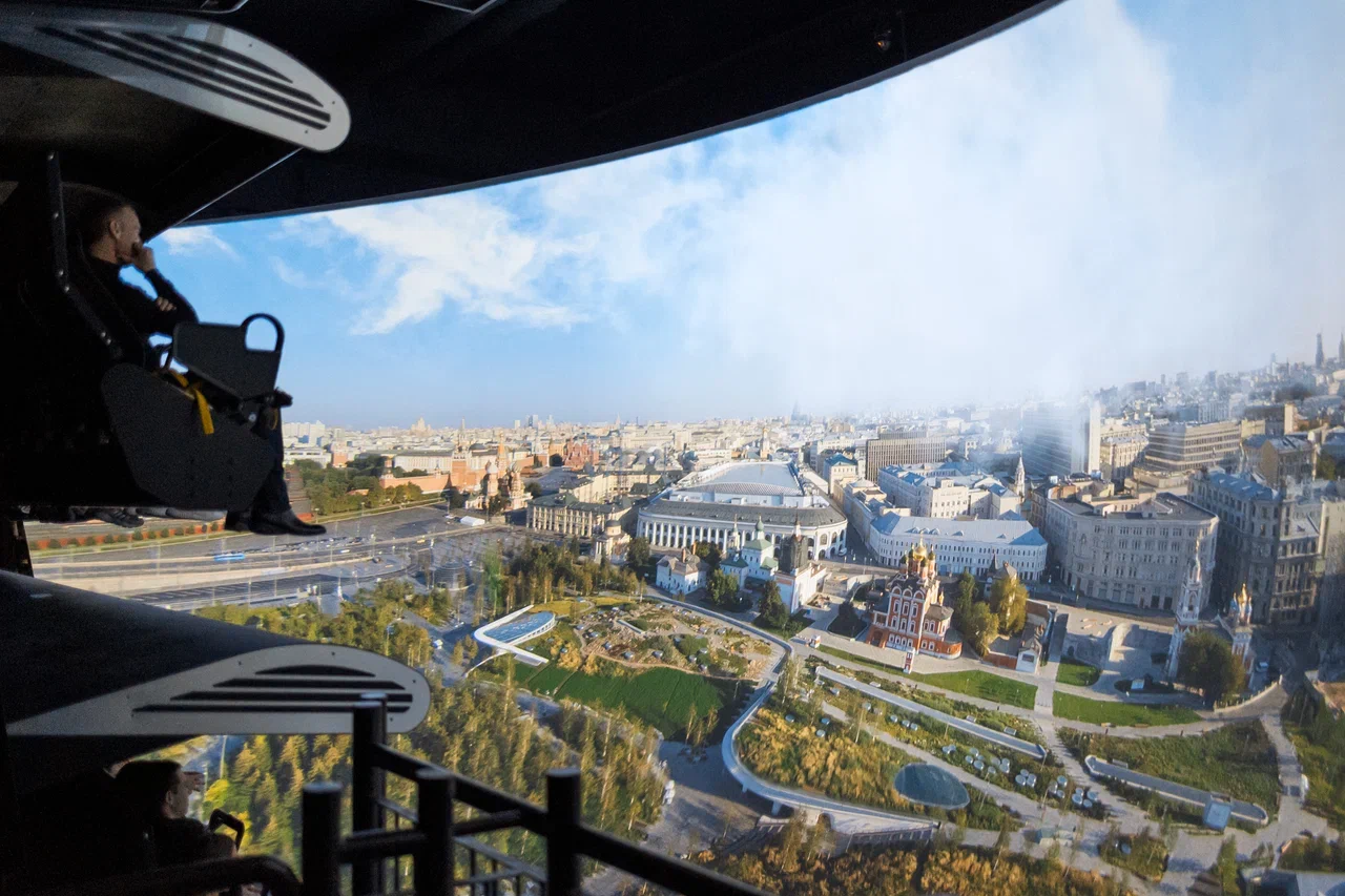 Как за короткое время побывать сразу в нескольких удивительных местах? Такую возможность дарят визуальные эффекты в медиакомплексе «Полет». И не только визуальные – здесь имеются генераторы ветра, водных брызг и запахов. Захватывающий аттракцион находится на подвижной платформе с 13-метровым полусферическим экраном. Комплекс создали компании, специализирующиеся на подобных спецэффектах. Фильмы «Полет над Москвой» и «Полет над Россией» были подготовлены именно для «Зарядья».