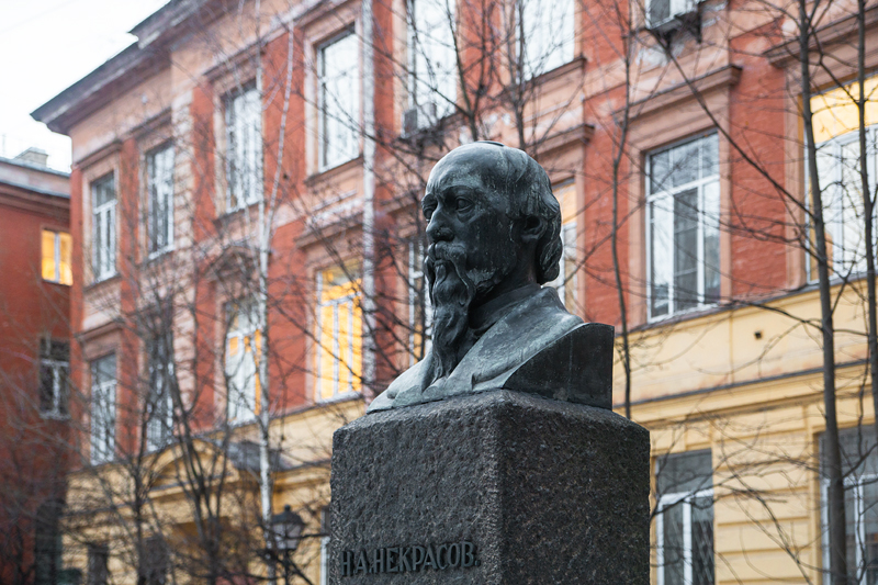 Побываем в сквере, который упоминается в одном из известнейших стихотворений Некрасова. Памятник поэту стал украшением территории возле дома на Литейном, 37, который раньше принадлежал Министру государственных имуществ.