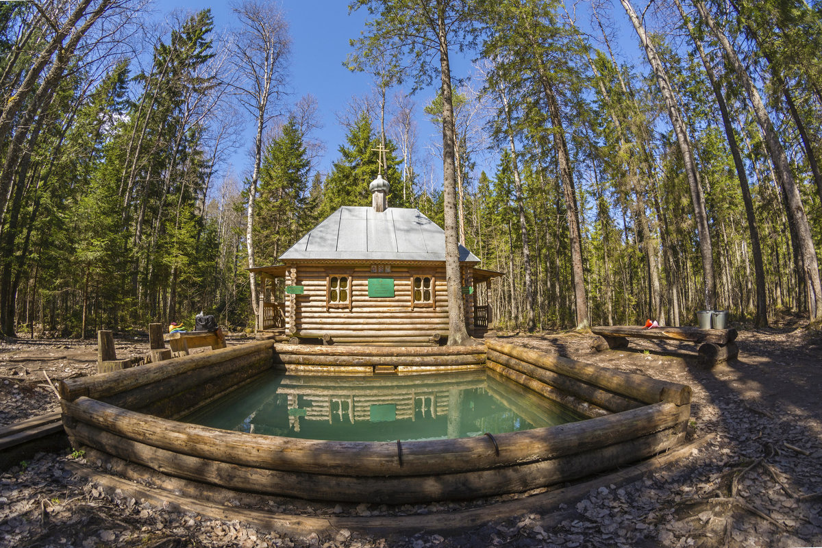 Первым посетим радоновый источник прп. Александра Свирского. Вода в нем голубого цвета, причем, и зимой, и летом имеет температуру + 6 градусов. Вода тут йодо-бромная хлоридно-натриевая радоновая, очень схожая с составом воды в источнике Введено-Оятского монастыря, но с большей общей минерализацией.