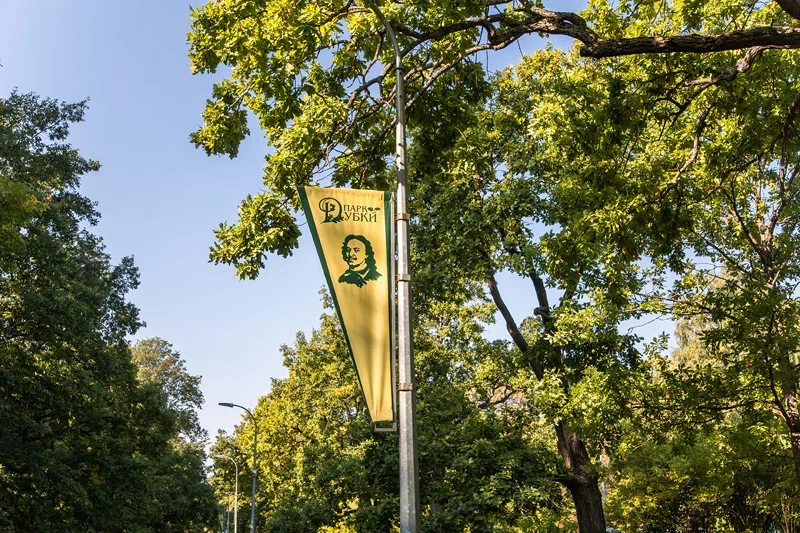 По пути к Дубкам проедем через остров, являвшийся личной собственностью Петра. Петровским он называется и сейчас. В 1711 году на ранее незаселённую местность перенесли один из небольших зимних домиков государя. Правителя привлекала небольшая удаленность от центра города. К даче через лес проложили просеку, началось освоение. По соседству от императорской резиденции расположилась павлинья ферма, домики придворных шутов и юрты ненцев – они пасли оленей, привезенных с Севера ради забавы. Серьезное строительство на остове не планировалось, поскольку любая вырытая для фундамента яма быстро наполнялась водой. Другой, мемориальный Петровский дворец, был построен уже в середине XVIII века на Петровской площади по проекту Антонио Ринальди. По Большому Петровскому мосту мы переправимся на Крестовский остров, а с него – на Каменный – туда, где недавно ещё рос посаженный самим Петром I дуб. Теперь на этом участке подрастает молодой дубок.