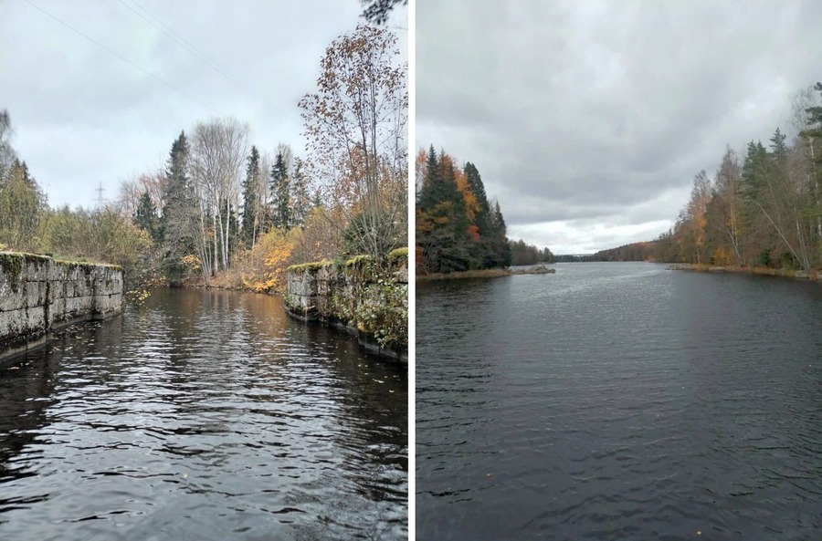 Пройдем по старому шлюзу №28 «Лавола», который не действует уже много лет – с тех пор, как по естественной протоке была проложена новая трасса Сайменского канала, а старая обмелела. Благодаря тому, что фарватер прошел по широкой протоке, части сооружения сохранились, однако доступ в шлюз ограничен размерами судна.