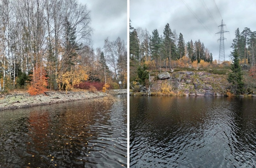 Наш комфортабельный катер легко проходит по этому участку! С борта увидим остатки гранитных стен, а выйдя в широкую часть канала, полюбуемся скромными по размерам, но живописными скалами, украшающими берега.