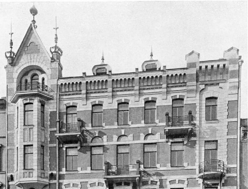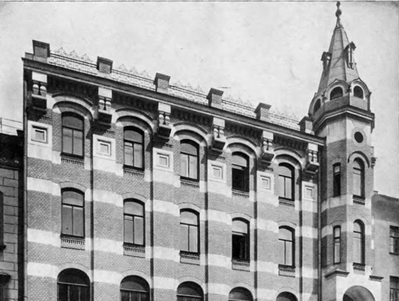 Еще одно оригинальное здание увидим на 3-й линии Васильевского острова. Гримм в соавторстве с архитектором Густавом фон Голи выполнил заказ купца Павла Прохорова. Они построили четырёхэтажный доходный дом в стиле модерн. Для отделки стен применили красный облицовочный кирпич в сочетании со штукатуркой ряда участков, подчеркнутых рустом. На их фоне особо выделяются кованые решетки и кронштейны балконов. Обратим внимание на детали, придающие силуэту остроту и навевающие мысли о стиле неоготики. Квартиры здесь были по карману только обеспеченным людям. В доме селились чиновники, купцы, видные промышленники. Помимо жилых помещений, располагались и коммерческие фирмы. После Революции здание было национализировано, а с 20-х годов квартиры стали коммунальными. На экскурсии поговорим о том, как удалось сохранить декоративно-художественное оформление фасадов.