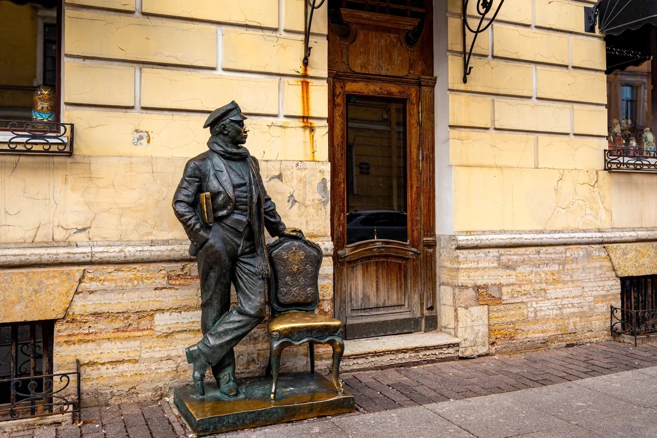 Образ великого комбинатора, стремившегося к лёгкой наживе и участвовавшего в искрометных авантюрах, знаком каждому. К юбилею героя Ильфа и Петрова на Итальянской улице был установлен памятник. Выбор места связан с тем, что некогда тут находился ресторан «Золотой Остап». Прототипом Бендера называют многих персонажей, но чаще всего им считают некого Генриха Блокка. Предприимчивый товарищ прославился в начале прошлого столетия как крупный аферист. Молодой человек организовал классическую финансовую пирамиду. О том, как этот деятель закончил свои дни, и что общего имел с книжным «сыном турецкоподданного», поговорим на экскурсии. И, конечно, обратим внимание на памятник. Вытертые до блеска места указывают на то, что их часто трогают прохожие ради исполнения желаний. Особенно достается носу и сиденью, но если присмотреться, то видны следы человеческого азарта и на папке, и на руке. Мы попробуем разные способы привлечения фортуны. А вдруг?