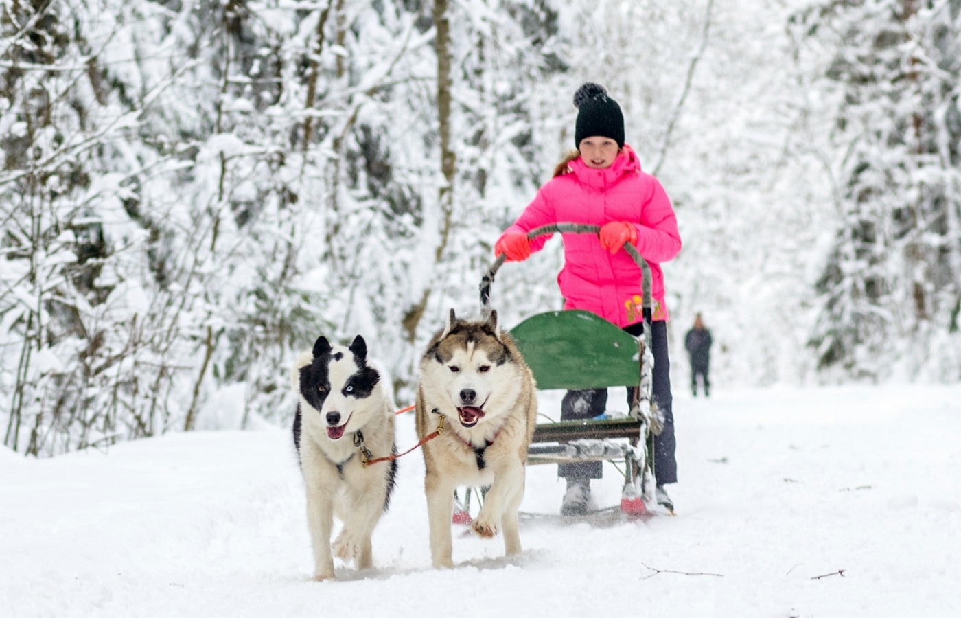 Предусмотрены 2 дистанции – 400 метров и 4 километра. В зависимости от расстояния, запрягают 2 или 5-8 собак, управляют нартом посетители или инструктор. Получим порцию адреналина, насладимся скоростью и потрясающими белоснежными просторами в лесах Ленинградской области.