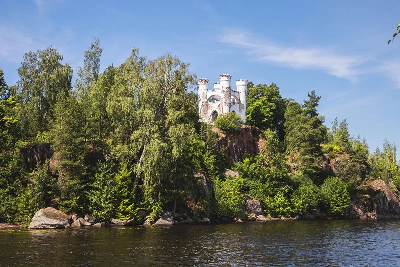 Романтическое название скалы имеет отсылку к Греческой культуре. Левкада – остров, с которого, согласно преданию, бросилась в волны поэтесса Сапфо. Считается, что причиной отчаянного шага стала невзаимная любовь к молодому корабельщику Фаону. В начале XIX века на скале стоял храм Амура, потом вместо обветшавшего здания установили обелиск в честь братьев де Бройль – родственников жены Пауля Николаи. Когда дипломат вышел в отставку, он занялся обустройством паркового ансамбля Монрепо. Один из появившихся объектов – памятник на Левкадской скале. Он напоминал о рано умершей супруге и ее братьях, погибших в сражениях наполеоновских войн. Сейчас скала является одной из видовых точек парка, а с ее вершины открываются потрясающие виды. Сюда можно попасть со стороны залива или по тропе от усадебного дома. Главное – помнить о безопасности и не приближаться к обрывам.