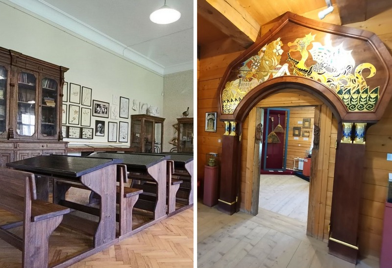 Внутри искусно оформленного небольшого здания расположен музей, при посещении которого можно полюбоваться мебелью, изготовленной по эскизам Малютина, акварелями Врубеля, керамикой Рериха, яркими расписными балалайками.