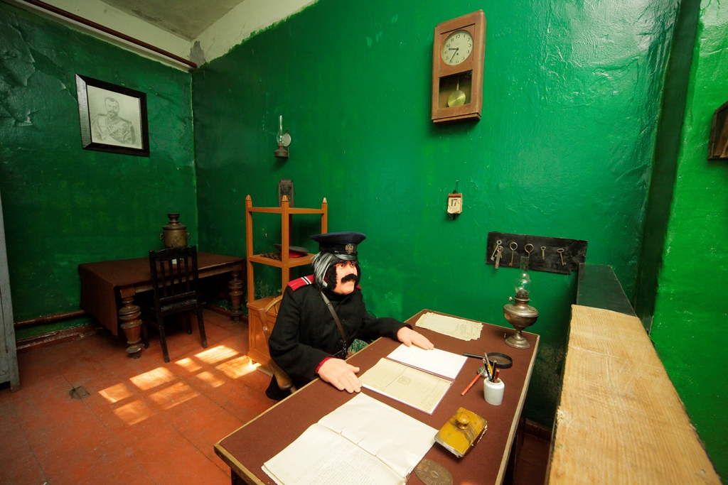В главном корпусе размещались специальные камеры для содержания осужденных на длительные сроки или смертную казнью. Долгое время местная тюрьма использовалась как промежуточный пункт на этапе ссыльных – здесь даже содержали декабристов по пути на каторгу. Столетие назад сюда попадали священнослужители, подвергшиеся репрессиям. Пройдем по коридорам и заглянем в камеры, где очень натурально воспроизведен быт заключенных.