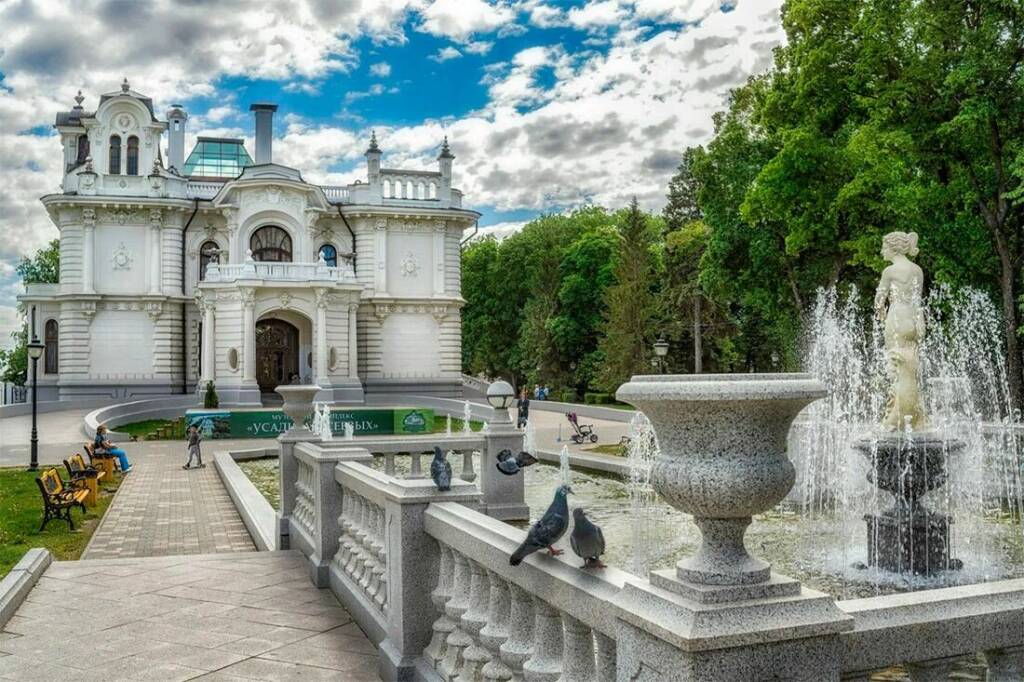 На берегу реки Цны возвышается белоснежный дворец среди тенистого парка.