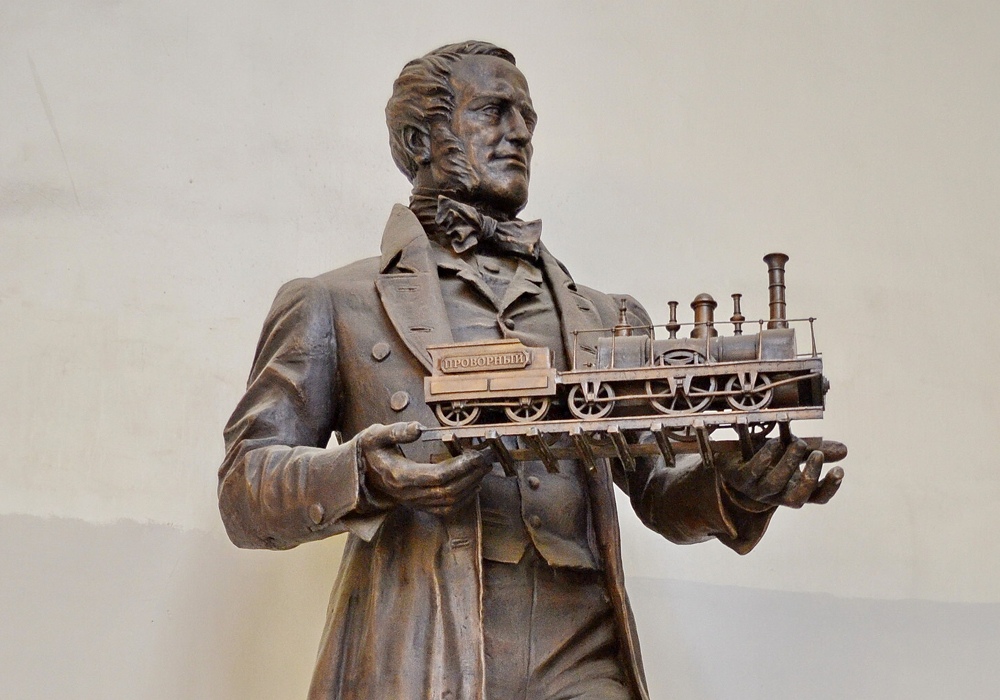 Отправимся на Витебский вокзал, где вспомним строителя первой в России железной дороги. Франц фон Герстнер в свое время прибыл в нашу страну совсем с другой целью. По приглашению Горного ведомства он обозревал горные заводы. Но после путешествий по России пришел к выводу, что нам просто необходимы железные дороги, о чем сообщил в прошении Николаю I. В 1837 году в Царское Село отправился первый поезд под управлением самого Герстнера. Состав развивал колоссальную по тем временам скорость – более 50 километров в час. Через 170 лет после знаменательного события в Световом зале Витебского вокзала установили памятник австрийцу. Он изображен с макетом паровоза «Проворный» в руках. Это чудо техники вместе с английским собратом «Стрела» служили верой и правдой на протяжении более 20 лет. О достижениях инженера и развитии железнодорожного транспорта побеседуем на экскурсии.