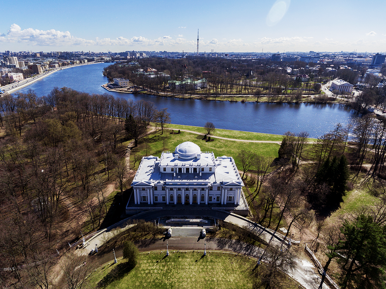 Вы посмотрите уникальную пригородную резиденцию, когда-то принадлежавшую Елагину (1725–1794). Впоследствии она была перестроена Карло Росси для Императрицы Марии Фёдоровны.