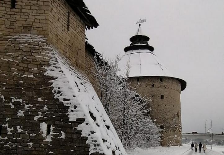 Пройдем по древнему Кремлю, который стоит уже более 1000 лет. На высоком холме при слиянии рек Псковы и Великой расположился Кром, о втором «имени» которого мы поговорим подробнее. Крепостные стены возвышаются на 6-8 метров и тянутся почти на километр. Здесь расположены 7 башен – каждая со своей интересной историей и особенностями.