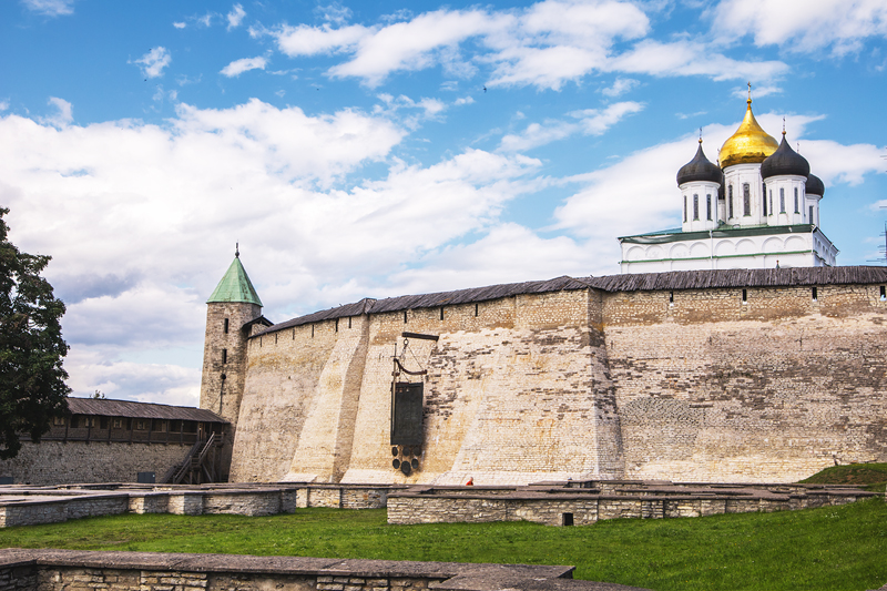 Пройдем по древнему Кремлю, который стоит уже более 1000 лет. На высоком холме при слиянии рек Псковы и Великой расположился Кром, о втором «имени» которого мы поговорим подробнее. Крепостные стены возвышаются на 6-8 метров и тянутся почти на километр. Здесь расположены 7 башен – каждая со своей интересной историей и особенностями.
