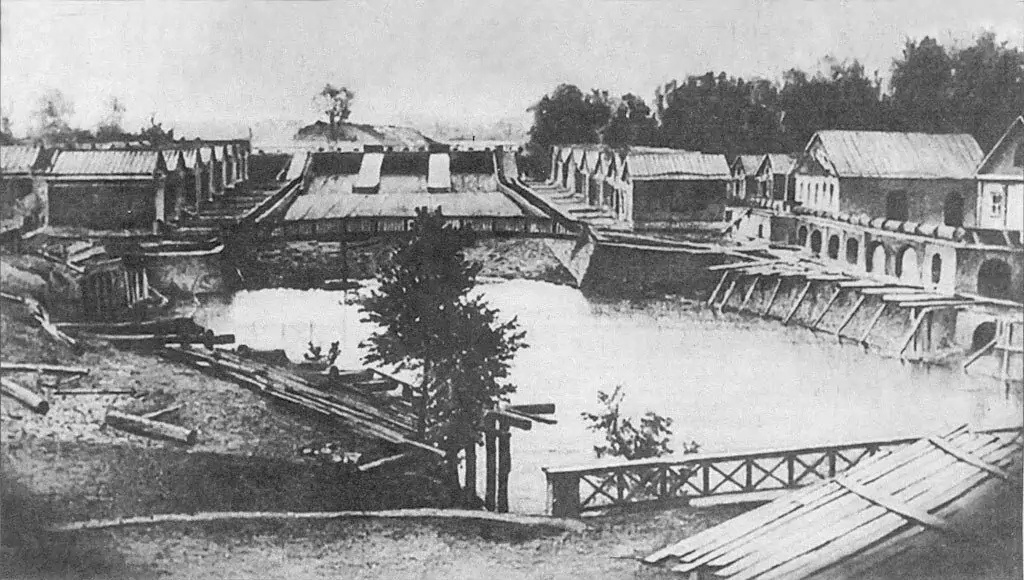 Проедем по Пороховым. Вскоре после основания города здесь шло развитие промышленности – появился завод по производству пороха. Место выбрали, потому что в раньше именно тут были пороги реки Охты. Для нужд предприятия построили плотину – первое гидротехническое сооружение Петербурга.