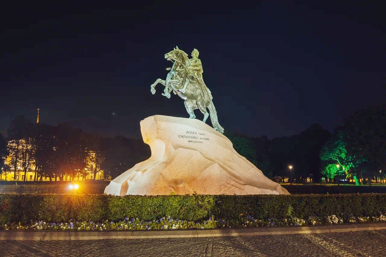 Поговорим об увеселительных традициях Северной столицы, сделаем памятные фотографии на фоне памятника первому императору, а также оценим красоту панорамы Университетской набережной, на которую с этой точки открывается незабываемый вид!
