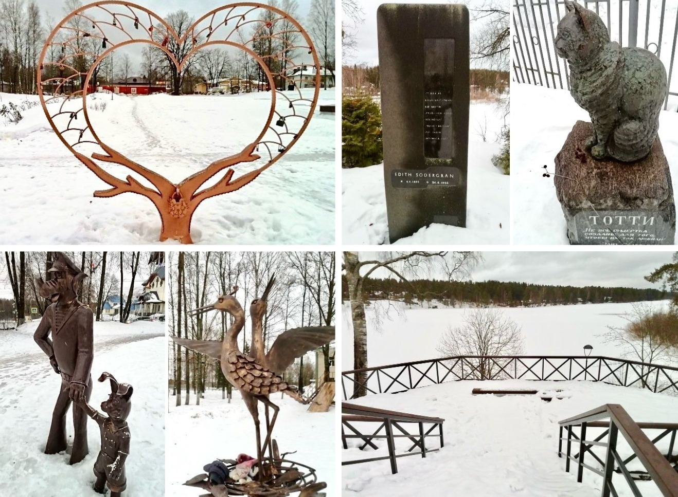 В относительно небольшом поселке сосредоточено большое количество интересных памятников. Многие из них посвящены героям советских мультфильмов. Почтальон Печкин и Матроскин, волк и заяц из «Ну, погоди!», а также аисты, трубочист, башмаки – все это творения кузнеца Топкова. Мастер сделал такие подарки односельчанам, но они неизменно радуют и приезжих. На прогулке успеем рассмотреть каждую фигуру и вспомнить любимых персонажей. Еще один памятник достоин отдельного разговора. Речь о скульптуре кота, которого звали Тотти – питомец принадлежал финской поэтессе Эдит Сёдергран, жившей в Рощино. После того, как животное погибло от рук соседа женщины, она написала подруге: «Не все существа созданы для того, чтобы их так любили». Именно эти слова высечены на постаменте. Также во время прогулки увидим «Скамью любви» и плотину, построенную еще в XIX веке.