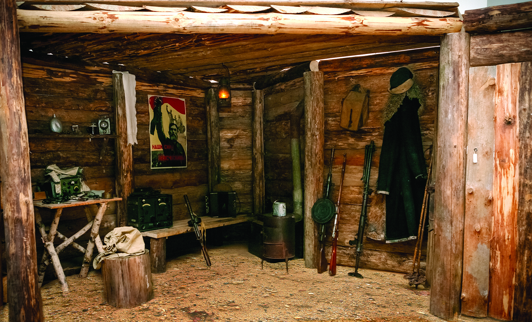 Семью Твардовских раскулачили, хутор сожгли, а его обитателей сослали в Зауралье. Осенью 1943 года Александр Трифонович вместе с частями 32-й кавалерийской дивизии в рядах освободителей шел к Загорью. От увиденного он произнес: «Я не узнал даже пепелище отцовского дома». Впоследствии для создания музея научные сотрудники в ходе экспедиций по окрестным селам собрали вещи, чтобы показать незатейливый быт семьи Твардовских. Кузнечные тиски и щипцы, часть плуга, предметы сельхозтруда, прялка – в такой атмосфере рос мальчик. Мебель воссоздал брат поэта Иван, прекрасный мастер-краснодеревщик.