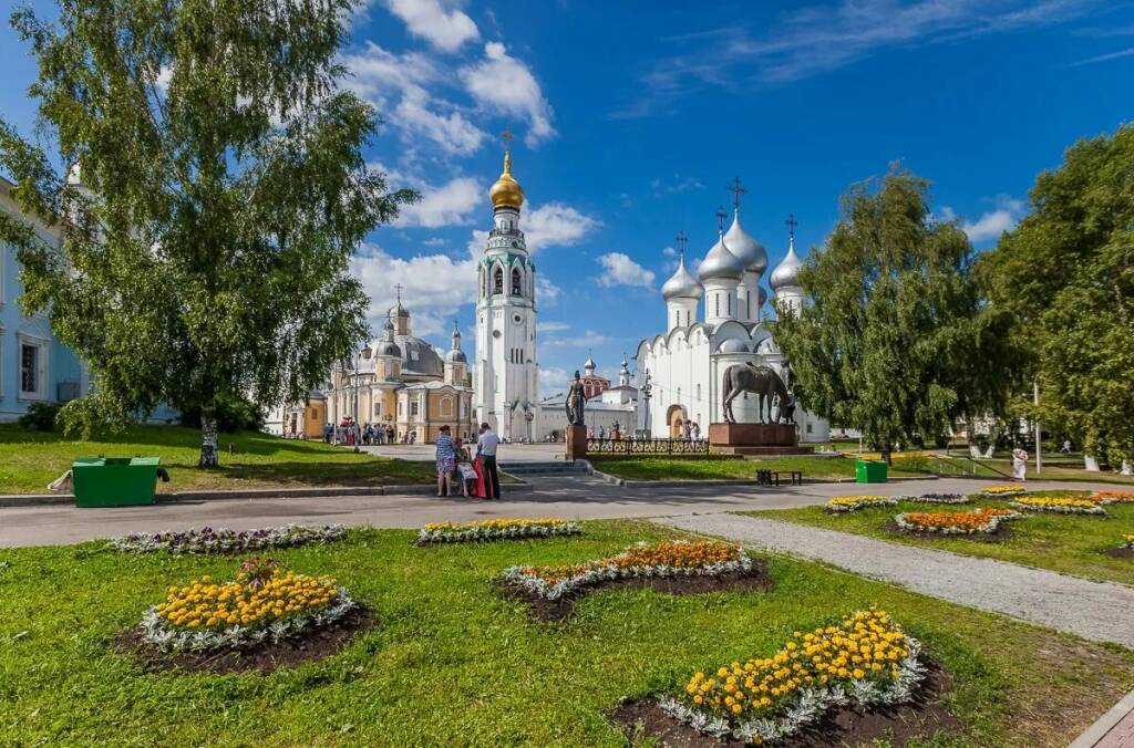 Красивый, милый и провинциальный город Вологда – жемчужина русского Севера и город-музей деревянного градостроительства. А ведь Вологда могла стать столицей не только деревянного зодчества, но и всей России. Это было во времена самого Ивана Грозного. Здесь, в Вологде, первый русский царь затеял строительство кремля, который должен был иметь облик, по размерам превышающий Московский. В 1586 году внутри этой грандиозной стройки заложили новый каменный Успенский собор, - сомнений не было: государь строит новую резиденцию для себя и столицу для своего царства. Но начатое дело не было доведено до конца. Сейчас в Вологде о далеких делах Ивана Грозного напоминают величественные постройки, каменные храмы и церкви. Мы посвятим второй день нашей экскурсии прогулке по этому замечательному старинному городу, в ходе которой увидим красивые храмы города — Софийский собор и церковь Покрова, Архиерейский двор и могучий Кремль