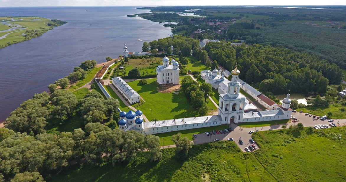 Мы увидим действующий мужской монастырь XII века, расположенный у истоков Волхова, близ озера Ильмень. Он является частью грандиозной природной панорамы, которую оживляют небольшие каменные храмы южных окрестностей города. Комплекс сооружений Юрьева монастыря выглядит впечатляюще. В него входят 52-метровая колокольня, и пять корпусов: Восточный, с мрачной тюремной камерой; Южный — с церковью Неопалимой купины; Архимандритский — со Спасским собором, под спудом которого были похоронены владыка Фотий и А. А. Орлова-Чесменская; над Северным возвышается колокольня; а с востока к нему примыкает церковь и Крестовоздвиженский собор. Его голубое пятиглавие с яркими золотыми звёздами привлекает внимание издалека. Нас ждёт насыщенная и яркая экскурсия!