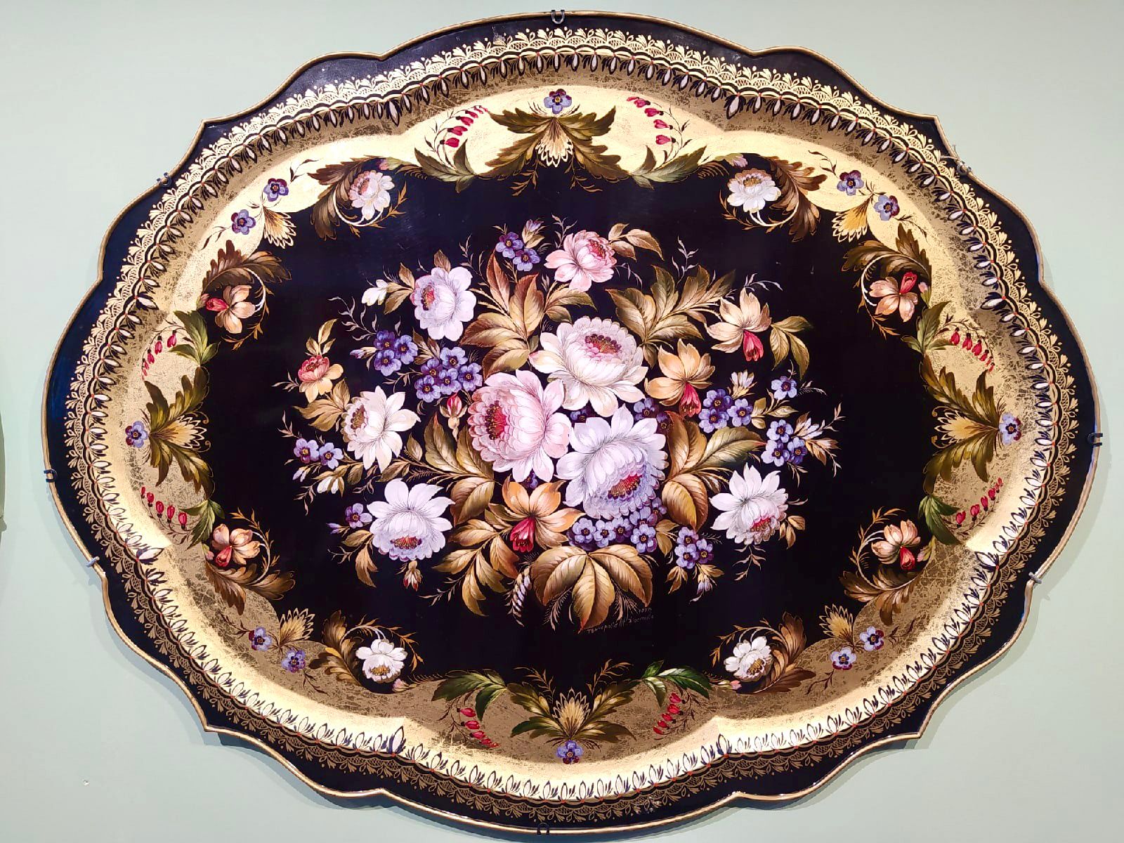 Мастера используют яркие краски, выбирая не только черный фон, но и другие цвета. А по краю подносов вьются ажурные растительные орнаменты. О давних традициях и преемственности поговорим на экскурсии в уникальном музее.