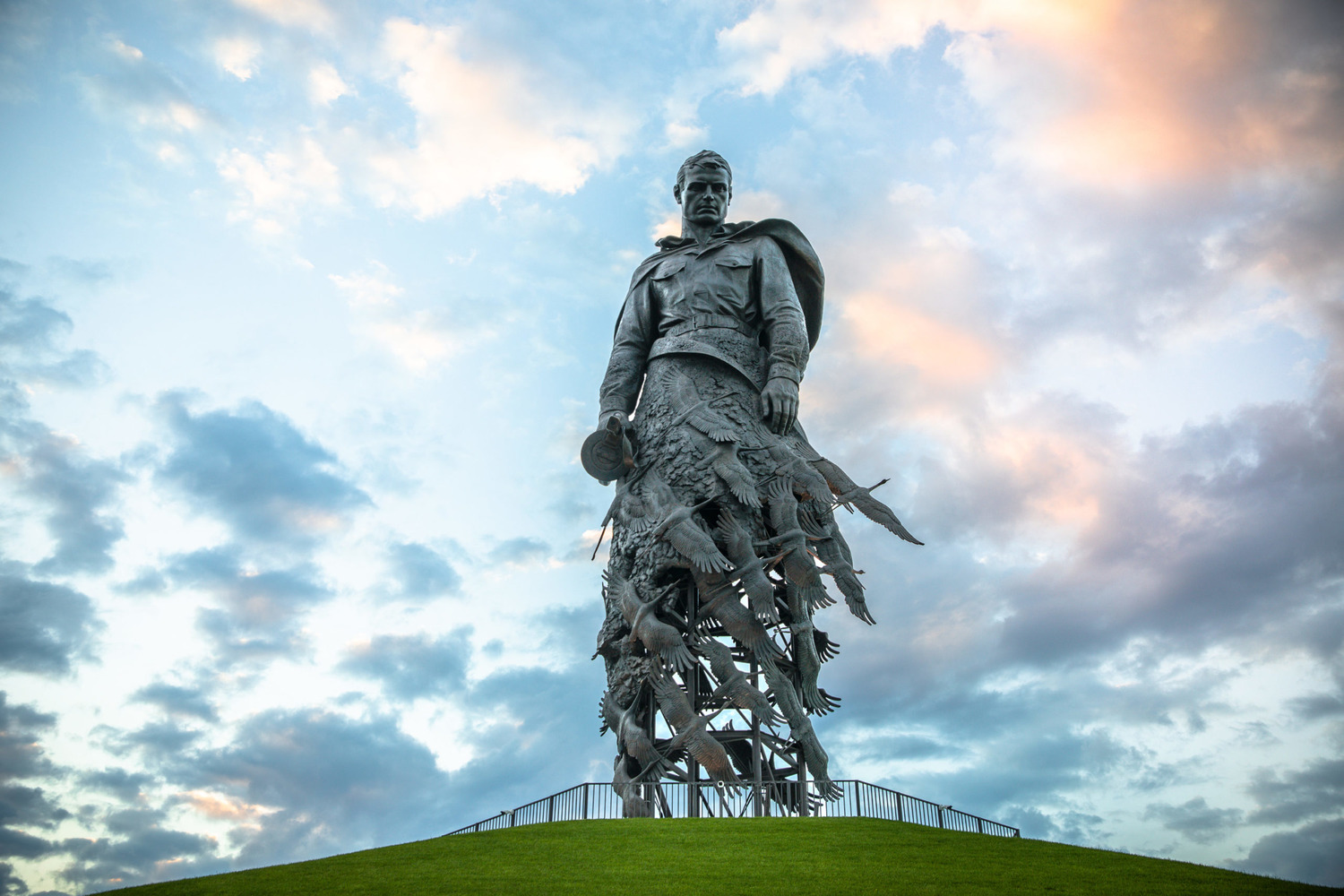 Мемориал возведен по инициативе ветеранов Великой Отечественной войны на месте одной из самых кровопролитных битв. Мемориал Советскому солдату выполнен в виде фигуры бойца, уносимой ввысь 35 журавлями. Статуя словно парит над холмом, рождая в памяти строки Расула Гамзатова о погибших солдатах, которые «превратились в белых журавлей».