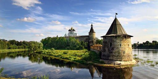 На высоком холме при слиянии рек Псковы и Великой находится сердце Пскова – Кремль. Днем белокаменные башни живописно отражается в водной глади, а вечером искусно подсвечиваются. Расположение города обуславливало необходимость постоянной защиты от набегов западных врагов. Сначала укрепления были несложными, и представляли собой земляные валы. Постепенно территория Псковского Кремля расширялась. Город рос, а военные технологии совершенствовались, и требовались все новые методы защиты. Именно поэтому был возведен Довмонтов город – оборонительный рубеж, названный так по имени литовского князя Довмонта, строителя города. Территория стала называться Застенье. На этом строительство не закончилось, и Кремль охватили еще несколько Колец. С крепостной стены и башен Кремля открывается захватывающий вид на излучину реки и долины за ней!